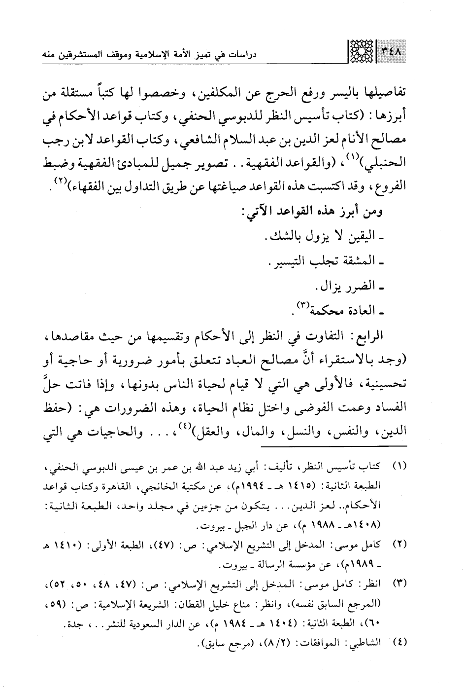 (¬1) كتاب تأسيس النظر، تأليف: أبي زيد عبد اللَّه بن عمر بن عيسى الدبوسي الحنفي، الطبعة الثانية: (1415 هـ - 1994 م)، عن مكتبة الخانجي، القاهرة وكتاب قواعد الأحكام. . لعز الدين. . . يتكون من جزءين في مجلد واحد، الطبعة الثانية: (1408 هـ - 1988 م)، عن دار الجبل - بيروت.