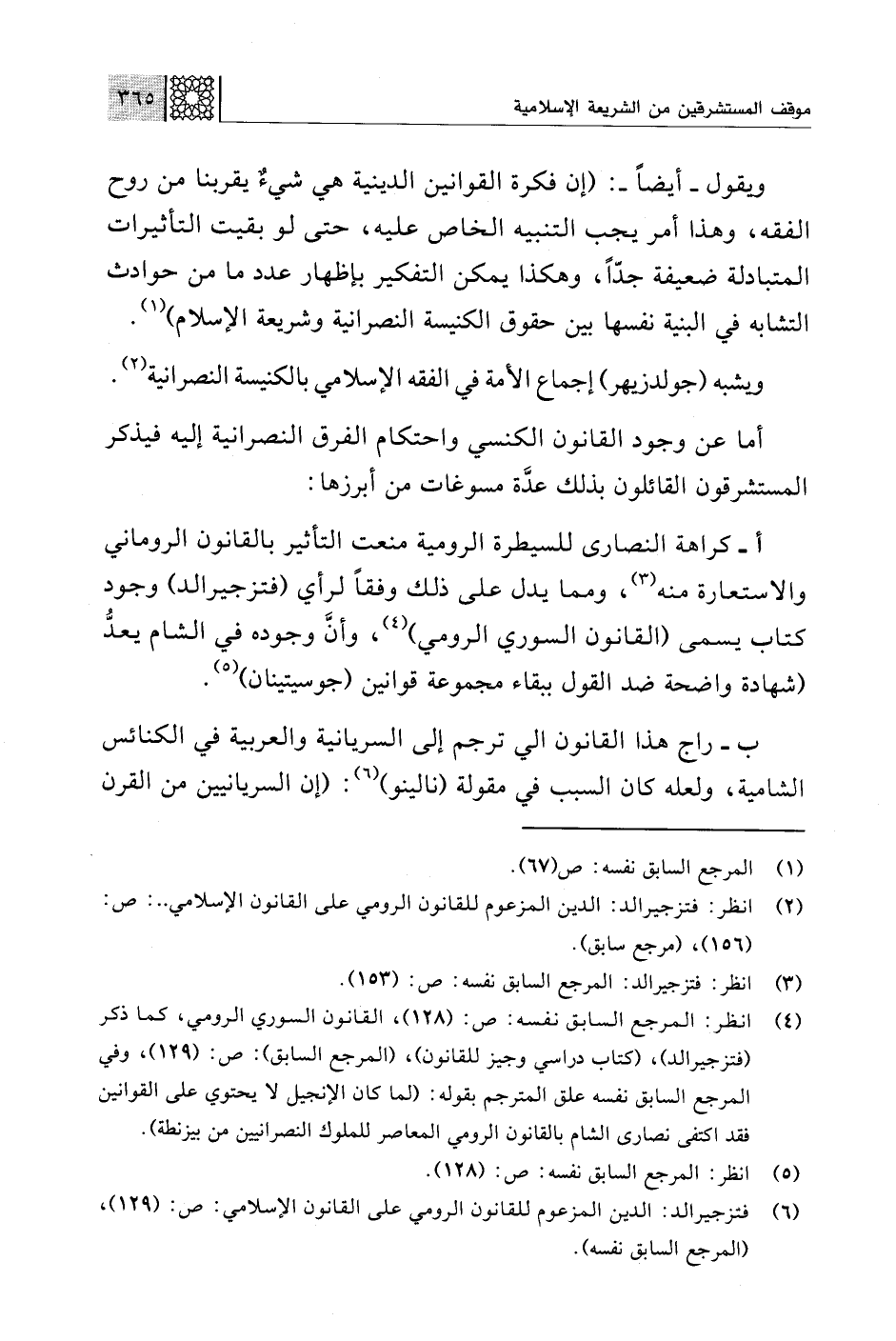 (¬6) فتزجيرالد: الدين المزعوم للفانون الرومي على القانون الإسلامي: ص: (129)، (المرجع السابق نفسه).