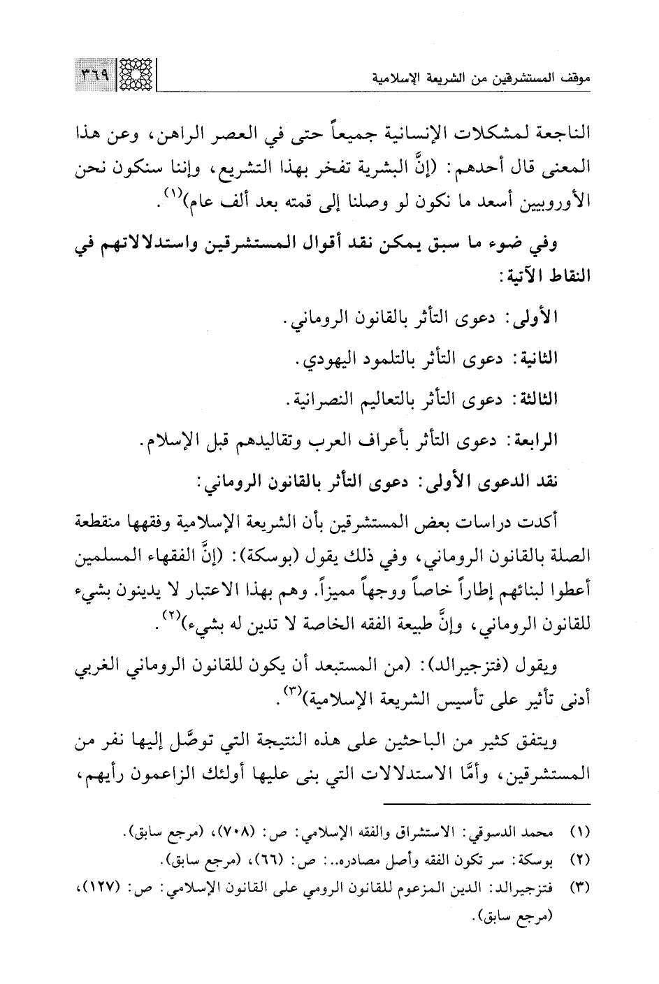 (¬1) محمد الدسوقي: الاستشراق والفقه الإسلامي: ص: (708)، (مرجع سابق).