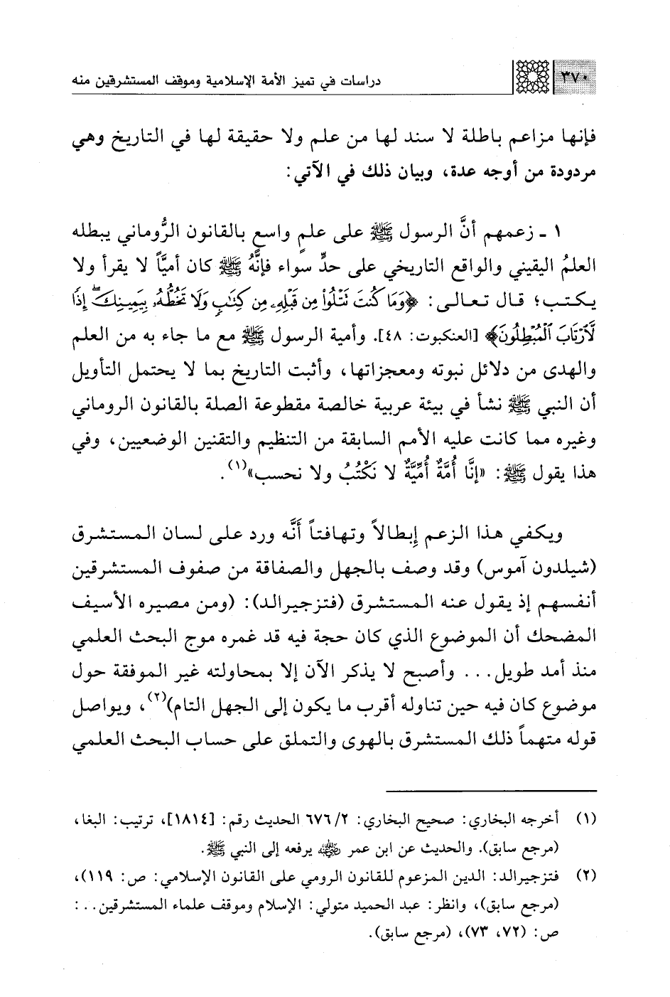 (¬2) فتزجيرالد: الدين المزعوم للقانون الرومي على القانون الإسلامي: ص: 119)، (مرجع سابق)، وانظر: عبد الحميد متولي: الإسلام وموقف علماء المستشرقين. .: ص: (72، 73)، (مرجع سابق).