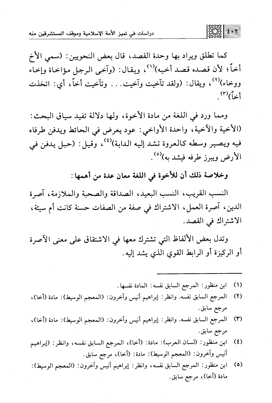 (¬5) ابن منظور: المرجع السابق نفسه، وانظر: إبراهيم أنيس وآخرون: (المعجم الوسيط): مادة (أخا)، مرجع سابق.