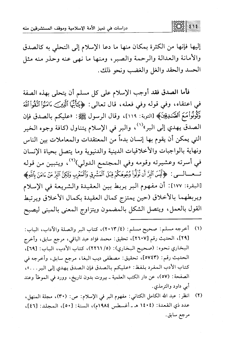 (¬2) انظر: عبد اللَّه الكامل الكتاني: مفهوم البر في الإسلام: ص: (30)، مجلة المنهل، عدد ذي القعدة: (1404 هـ - أغسطس 1984 م)، السنة: [50]، المجلد: [46]، مرجع سابق.