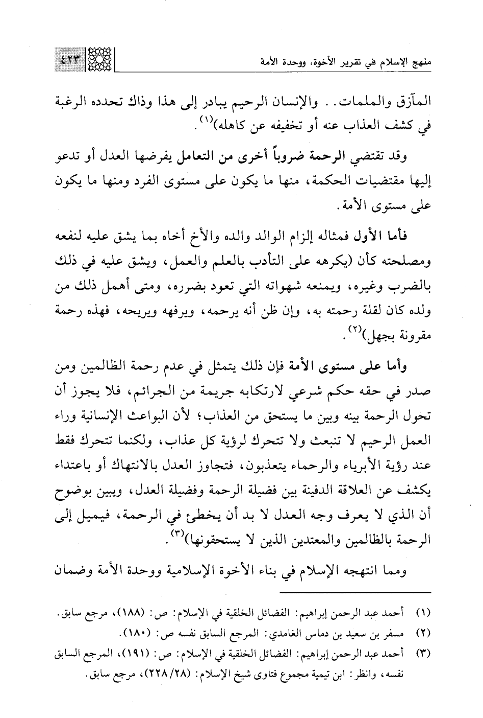 (¬3) أحمد عبد الرحمن إبراهيم: الفضائل الخلقية في الإسلام: ص: (191)، المرجع السابق نفسه، وانظر: ابن تيمية مجموع فتاوى شيخ الإسلام: (28/ 228)، مرجع سابق.