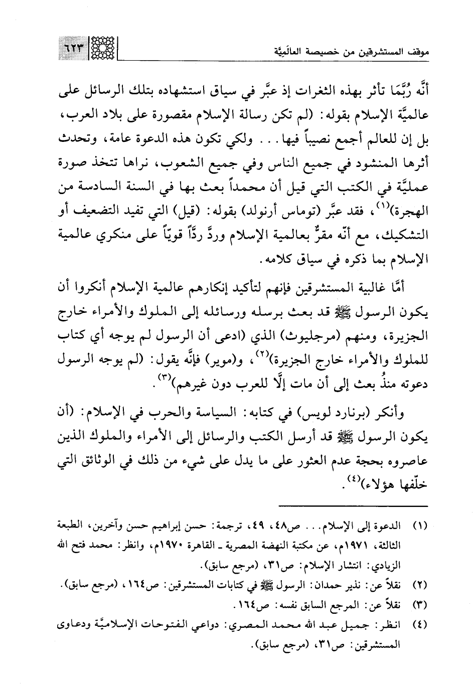 (¬4) انظر: جميل عبد اللَّه محمد المصري: دواعي الفتوحات الإسلاميَّة ودعاوى المستشرقين: ص 31، (مرجع سابق).