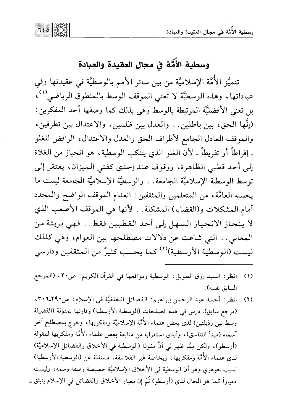 (¬1) انظر: السيد رزق الطويل: الوسطية ومواقعها في القرآن الكريم: ص 20، (المرجع السابق نفسه).
