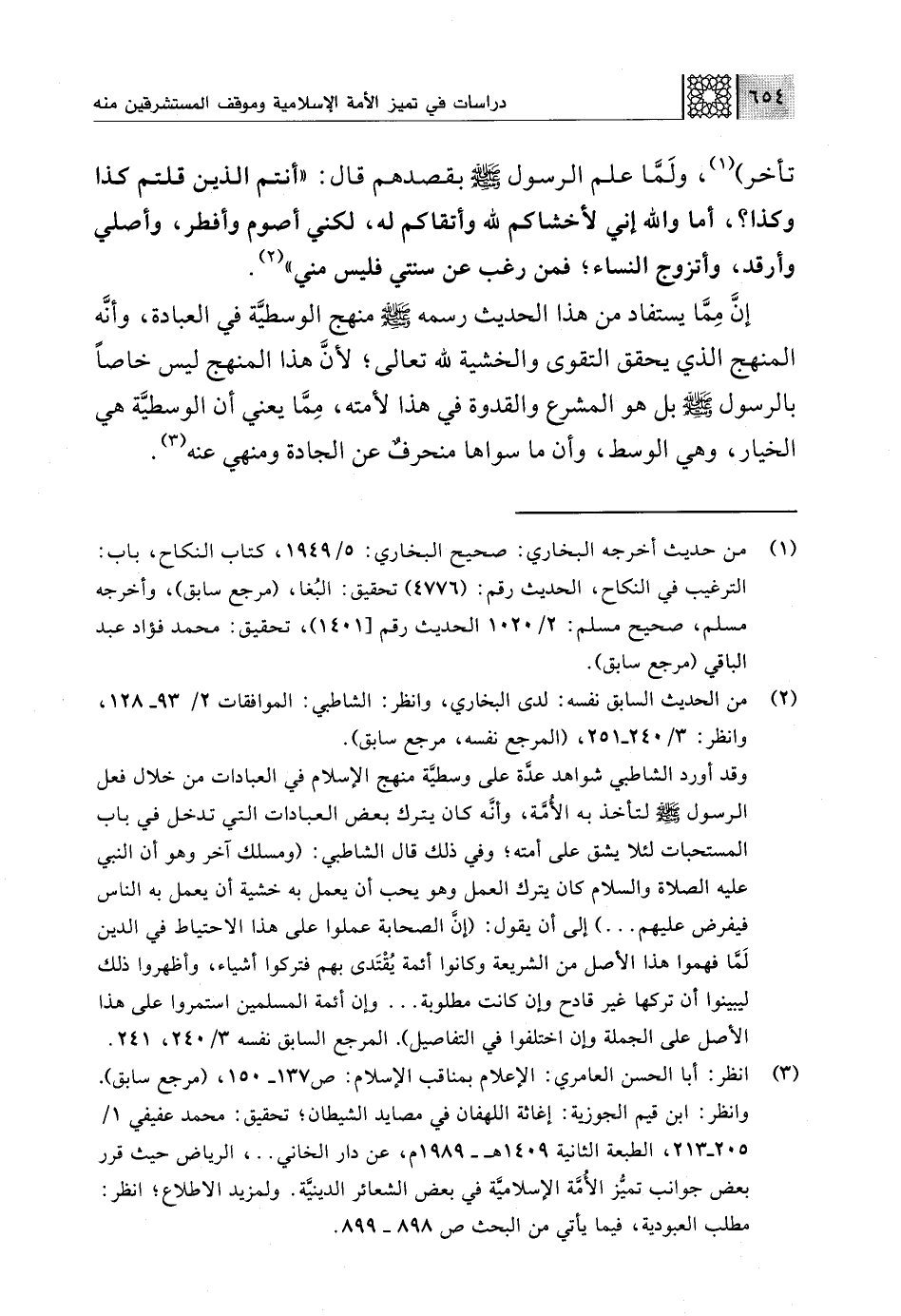 (¬2) من الحديث السابق نفسه: لدى البخاري، وانظر: الشاطبي: الموافقات 2/ 93 - 128، وانظر: 3/ 240 - 251، (المرجع نفسه، مرجع سابق).