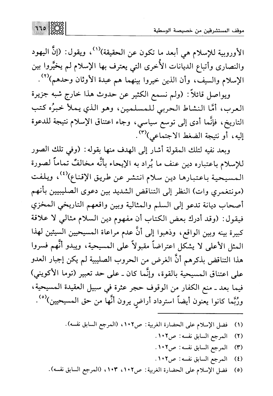 (¬5) فضل الإسلام على الحضارة الغربية: ص 102، 103، (المرجع السابق نفسه).