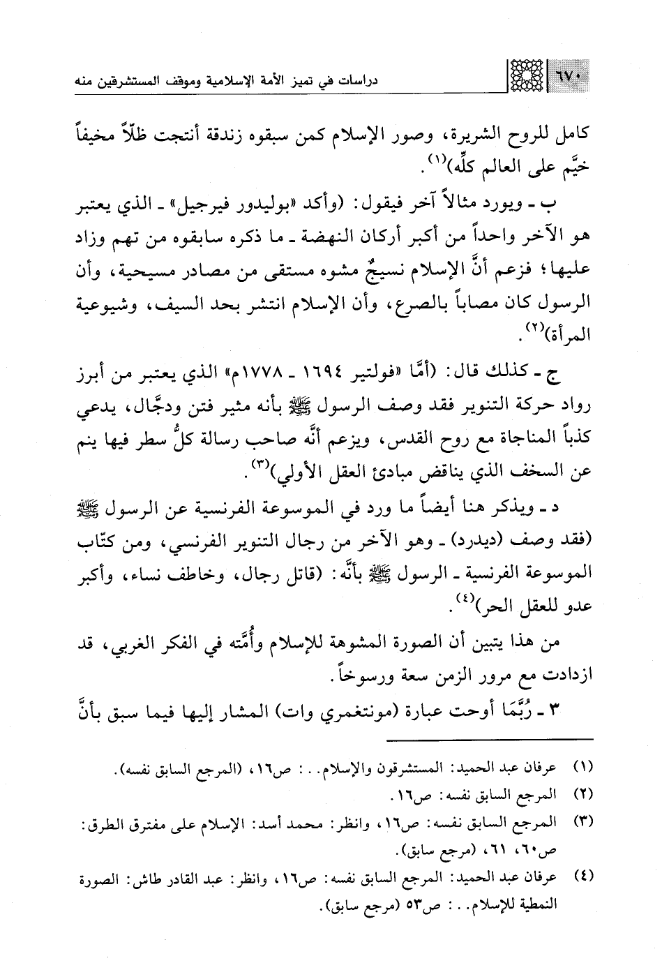 (¬4) عرفان عبد الحميد: المرجع السابق نفسه: ص 16، وانظر: عبد القادر طاش: الصورة النمطية للإسلام. .: ص 53 (مرجع سابق).