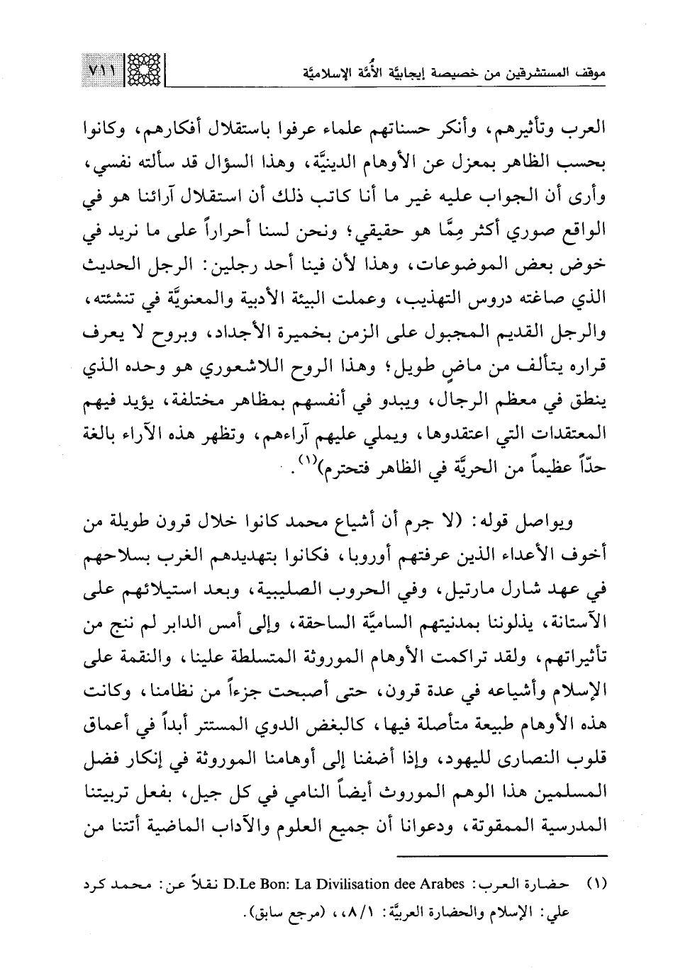 (¬1) حضارة العرب: D.Le Bon: La Divilisation dee Arabes نقلًا عن: محمد كرد علي: الإسلام والحضارة العربيَّة: 1/ 8،، (مرجع سابق).