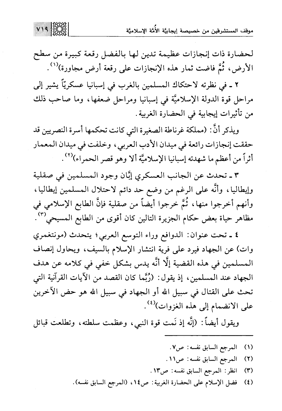 (¬4) فضل الإسلام على الحضارة الغربية: ص 14، (المرجع السابق نفسه).