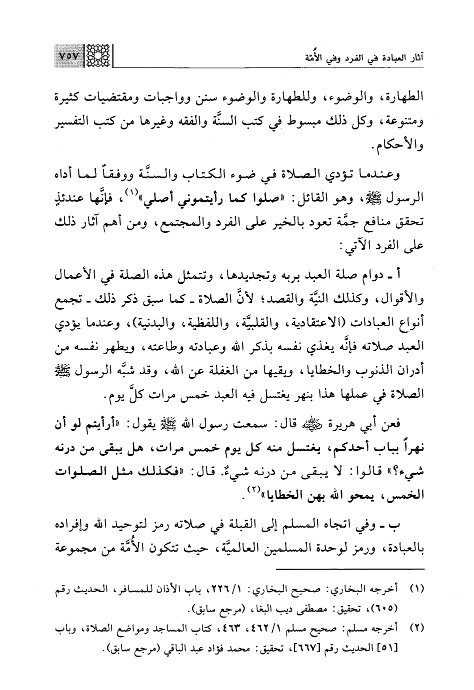 (¬2) أخرجه مسلم: صحيح مسلم 1/ 462، 463، كتاب المساجد ومواضع الصلاة، وباب [51] الحديث رقم [667]، تحقيق: محمد فؤاد عبد الباقي (مرجع سابق).