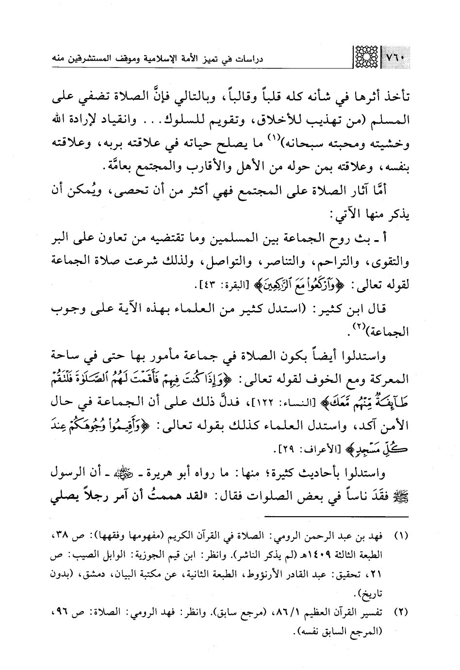 (¬2) تفسير القرآن العظيم 1/ 86، (مرجع سابق). وانظر: فهد الرومي: الصلاة: ص 96، (المرجع السابق نفسه).