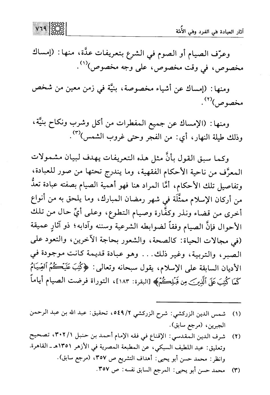 (¬2) شرف الدين المقدسي: الإقناع في فقه الإمام أحمد بن حنبل 1/ 302، تصحيح وتعليق: عبد اللطيف السبكي، عن المطبعة المصرية في الأزهر 1351 هـ - القاهرة. وانظر: محمد حسن أبو يحيى: أهداف التشريع ص 357، (مرجع سابق).