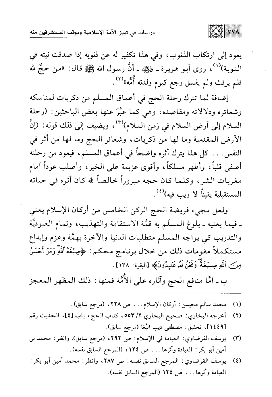 (¬3) يوسف القرضاوي: العبادة في الإسلام: ص 292، (مرجع سابق). وانظر: محمد بن أمين أبو بكر: العبادة وأثرها. . . ص 124، (المرجع السابق نفسه).