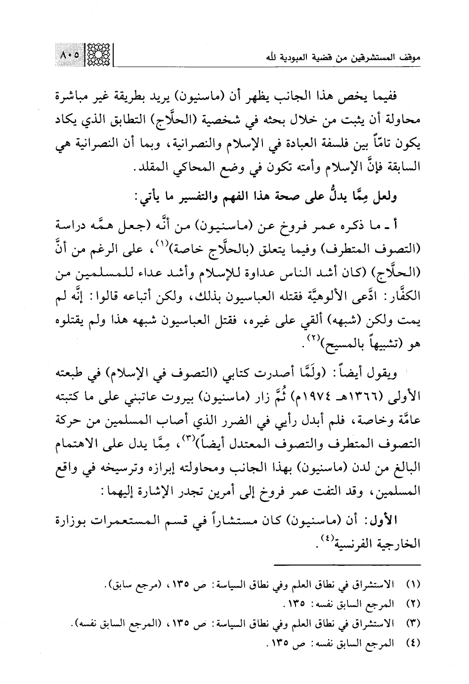 (¬1) الاستشراق في نطاق العلم وفي نطاق السياسة: ص 135، (مرجع سابق).