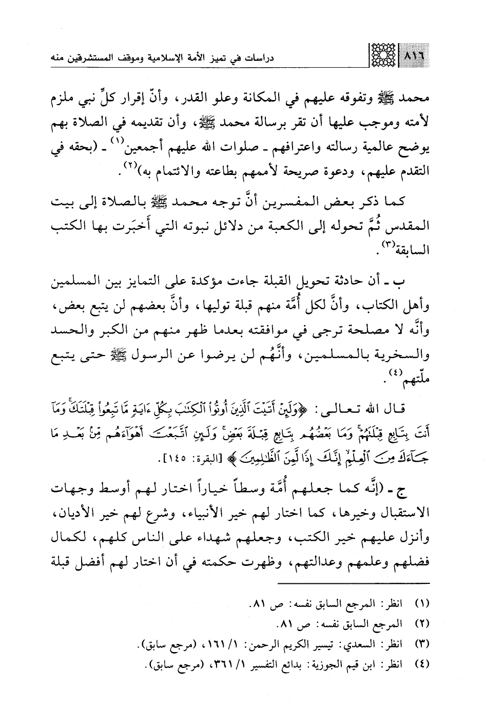 (¬3) انظر: السعدي: تيسير الكريم الرحمن: 1/ 161، (مرجع سابق).