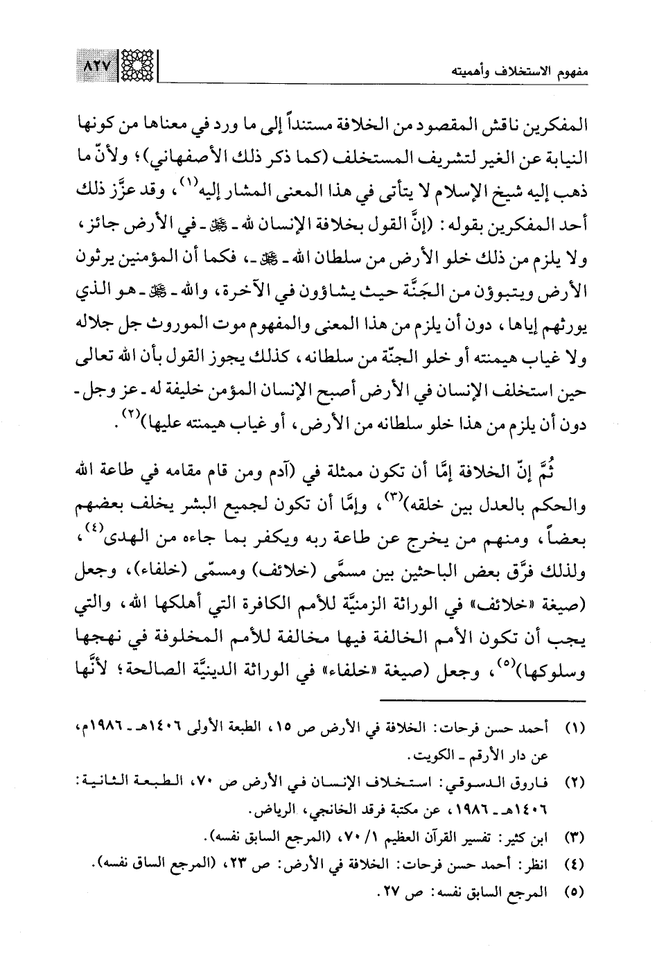 (¬4) انظر: أحمد حسن فرحات: الخلافة في الأرض: ص 23، (المرجع السابق نفسه).