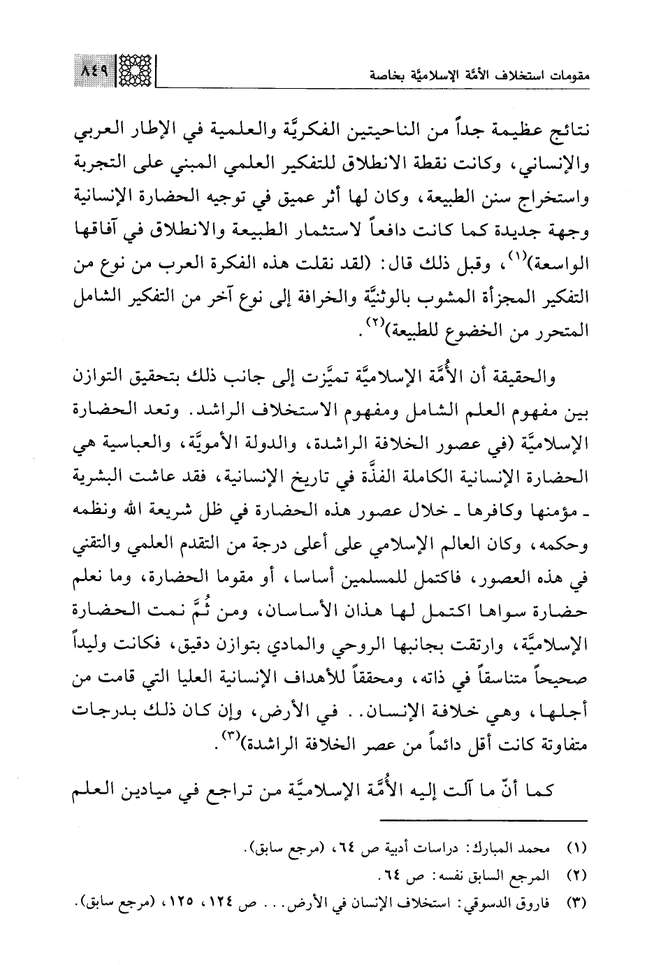 (¬3) فاروق الدسوقي: استخلاف الإنسان في الأرض. . . ص 124، 125، (مرجع سابق).
