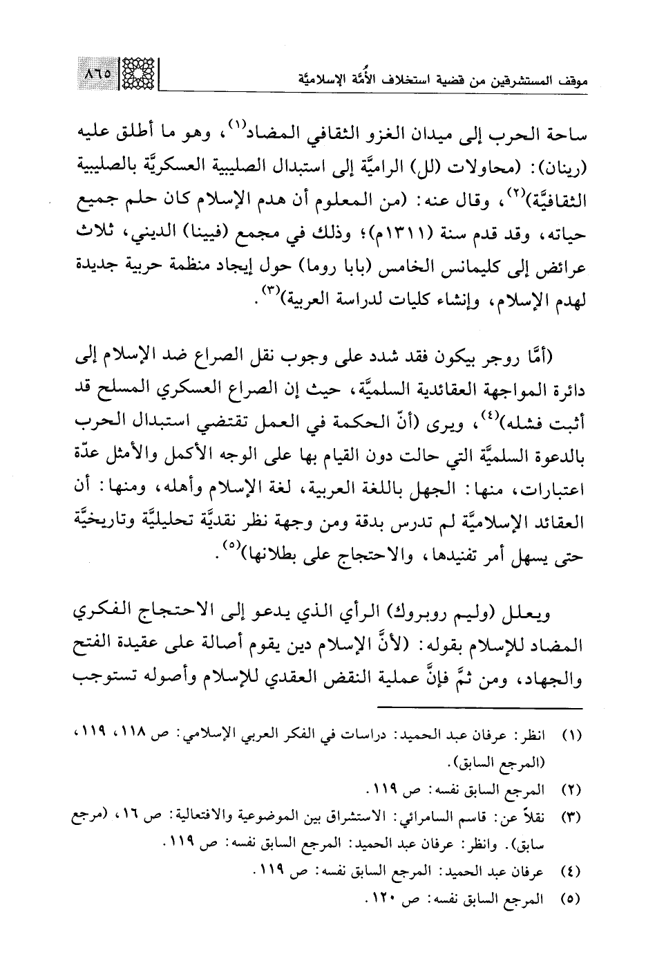 (¬3) نقلًا عن: قاسم السامرائي: الاستشراق بين الموضوعية والافتعالية: ص 16، (مرجع سابق). وانظر: عرفان عبد الحميد: المرجع السابق نفسه: ص 119.