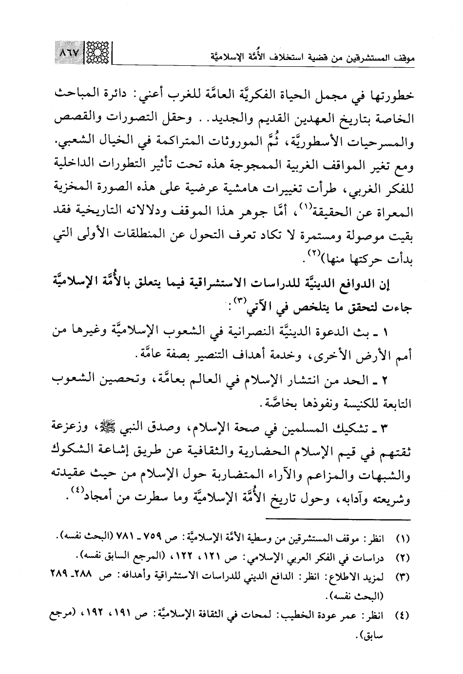 (¬3) لمزيد الاطلاع: انظر: الدافع الديني للدراسات الاستشراقية وأهدافه: ص 288 - 289 (البحث نفسه).