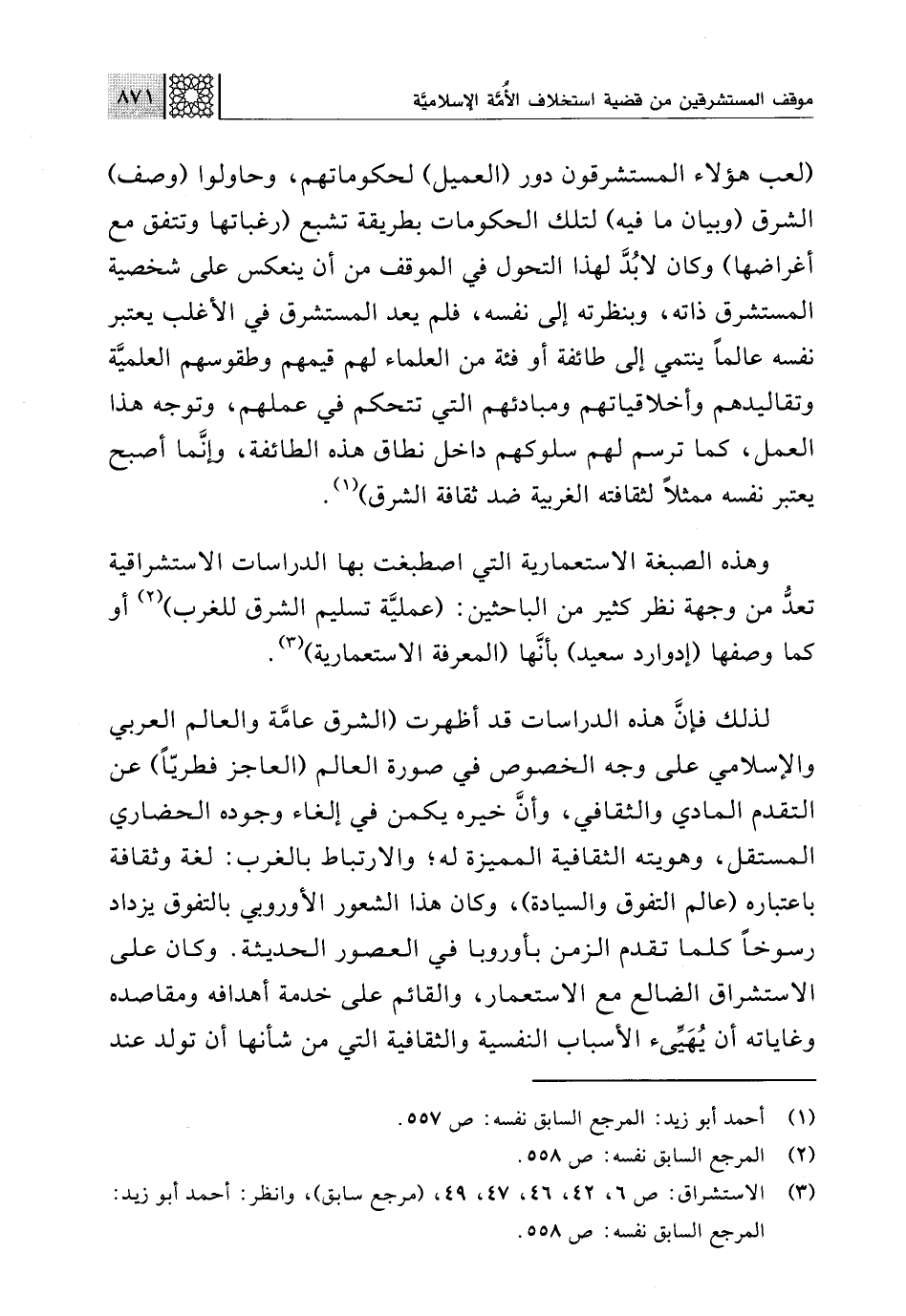 (¬3) الاستشراق: ص 6، 42، 46، 47، 49، (مرجع سابق)، وانظر: أحمد أبو زيد: المرجع السابق نفسه: ص 558.