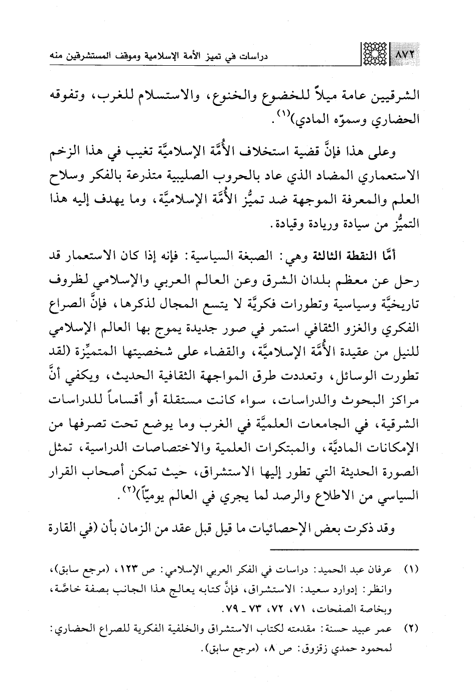 (¬2) عمر عبيد حسنة: مقدمته لكتاب الاستشراق والخلفية الفكرية للصراع الحضاري: لمحمود حمدي زقزوق: ص 8، (مرجع سابق).