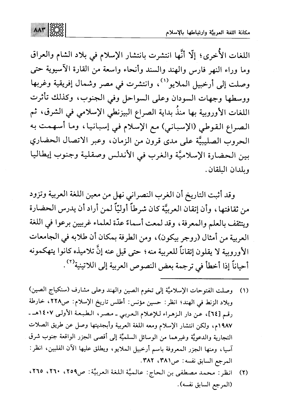 (¬2) انظر: محمد مصطفى بن الحاج: عالميَّة اللغة العربيَّة: ص 259، 260، 265، (المرجع السابق نفسه).