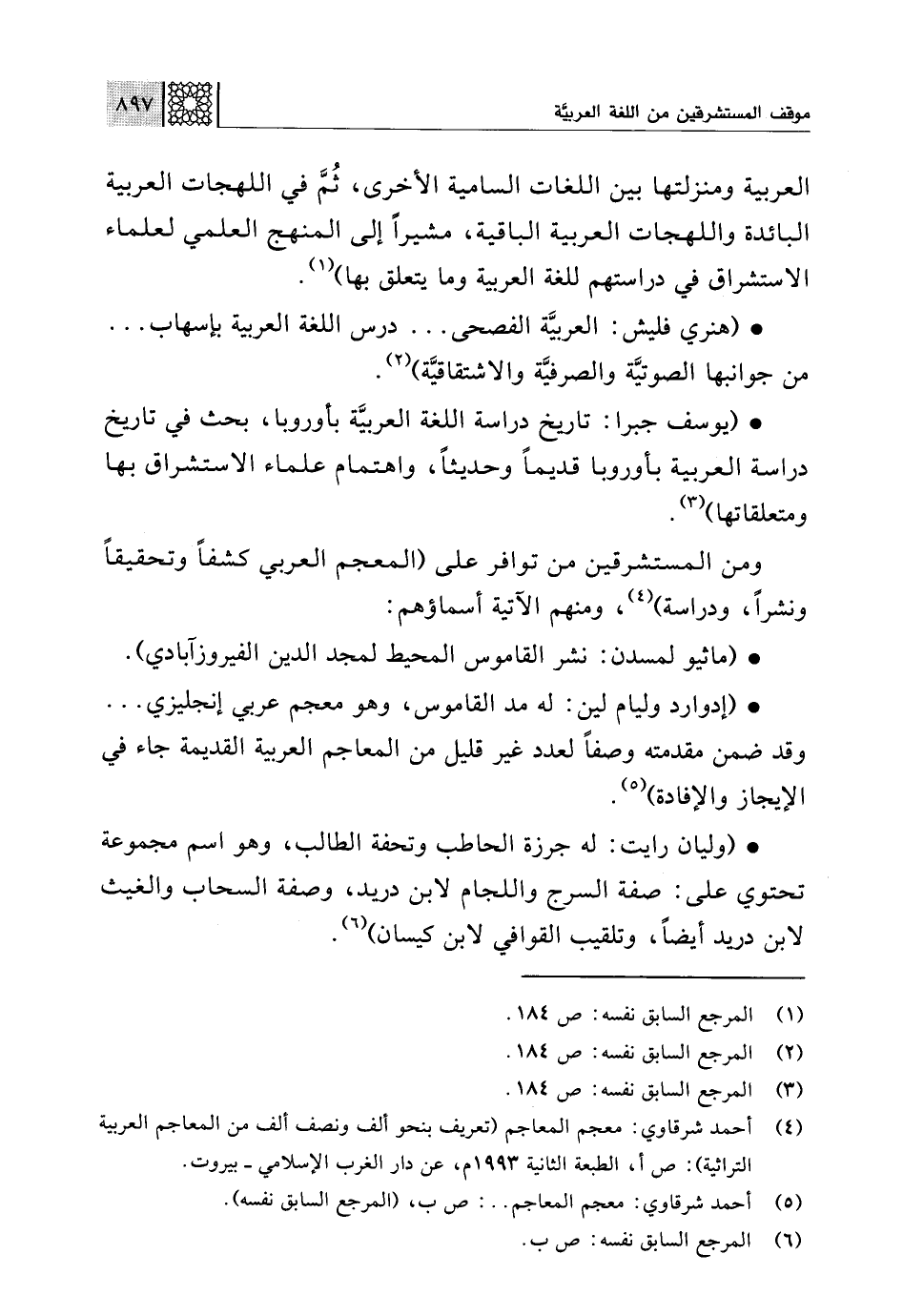 • (هنري فليش: العربيَّة الفصحى. . . درس اللغة العربية بإسهاب. . . من جوانبها الصوتيَّة والصرفيَّة والاشتقاقيَّة) (¬2).
