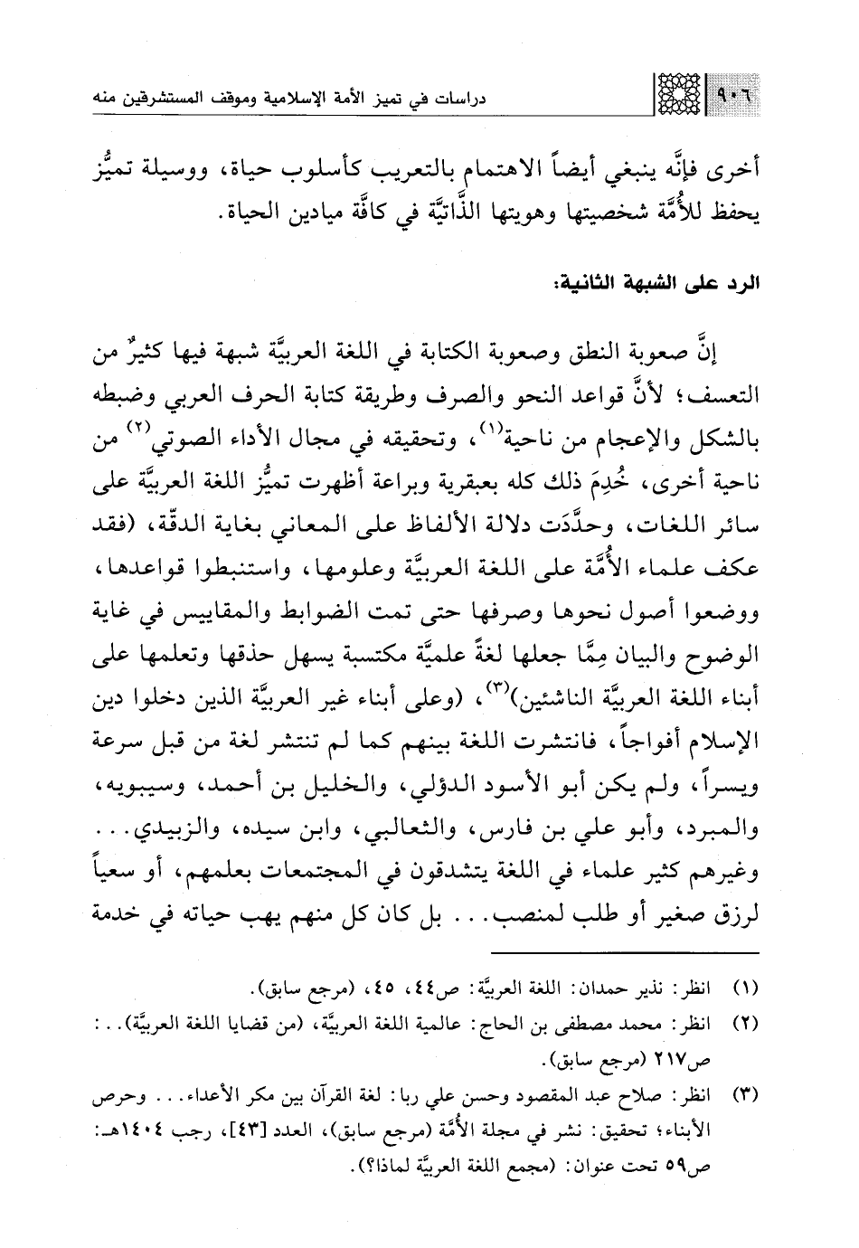 (¬3) انظر صلاح عبد المقصود وحسن علي ربات لغة القرآن بين مكر الأعداء. . . وحرص الأبناء؛ تحقيق: نشر في مجلة الأُمَّة (مرجع سابق)، العدد [43]، رجب 1404 هـ: ص 59 تحت عنوان: (مجمع اللغة العربيَّة لماذا؟).