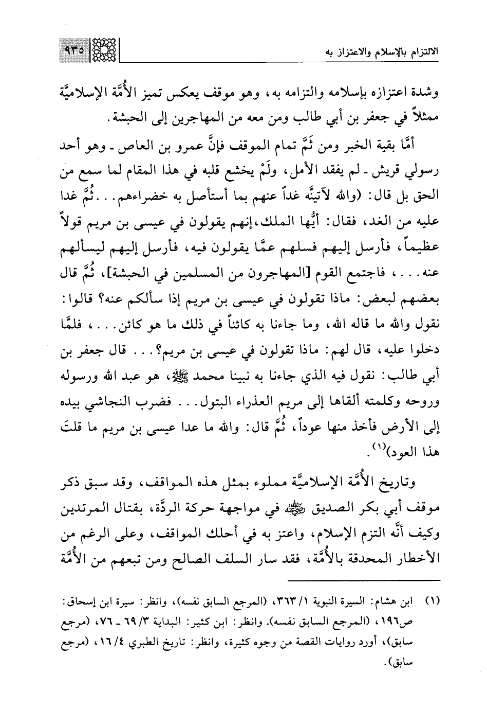 وشدة اعتزازه بإسلامه والتزامه به، وهو موقف يعكس تميز الأُمَّة الإسلاميَّة ممثلًا في جعفر بن أبي طالب ومن معه من المهاجرين إلى الحبشة.