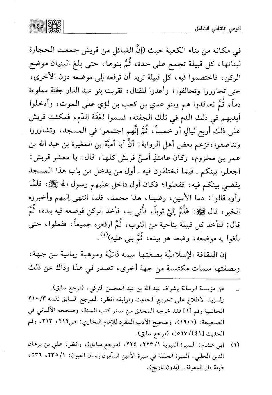 (¬1) ابن هشام: السيرة النبوية 1/ 223، 224، (مرجع سابق)، وانظر: علي بن برهان الدين الحلبي: السيرة الحلبيَّة في سيرة الأمين المأمون إنسان العيون: 1/ 235، 236، طبعة دار المعرفة. . (بدون تاريخ).