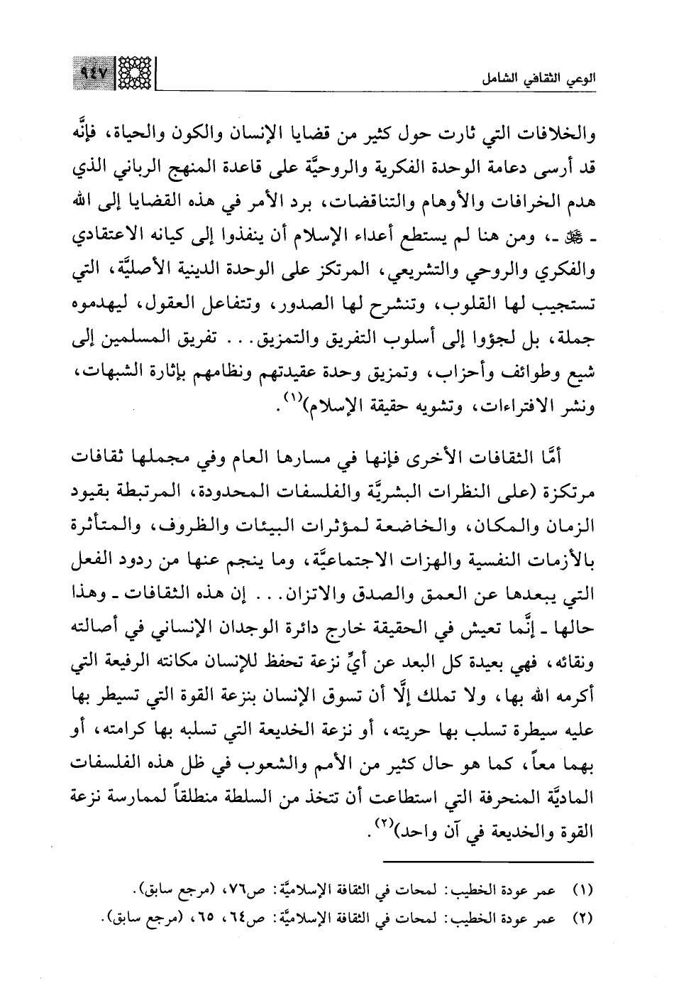 (¬1) عمر عودة الخطيب: لمحات في الثقافة الإسلاميَّة: ص 76، (مرجع سابق).
