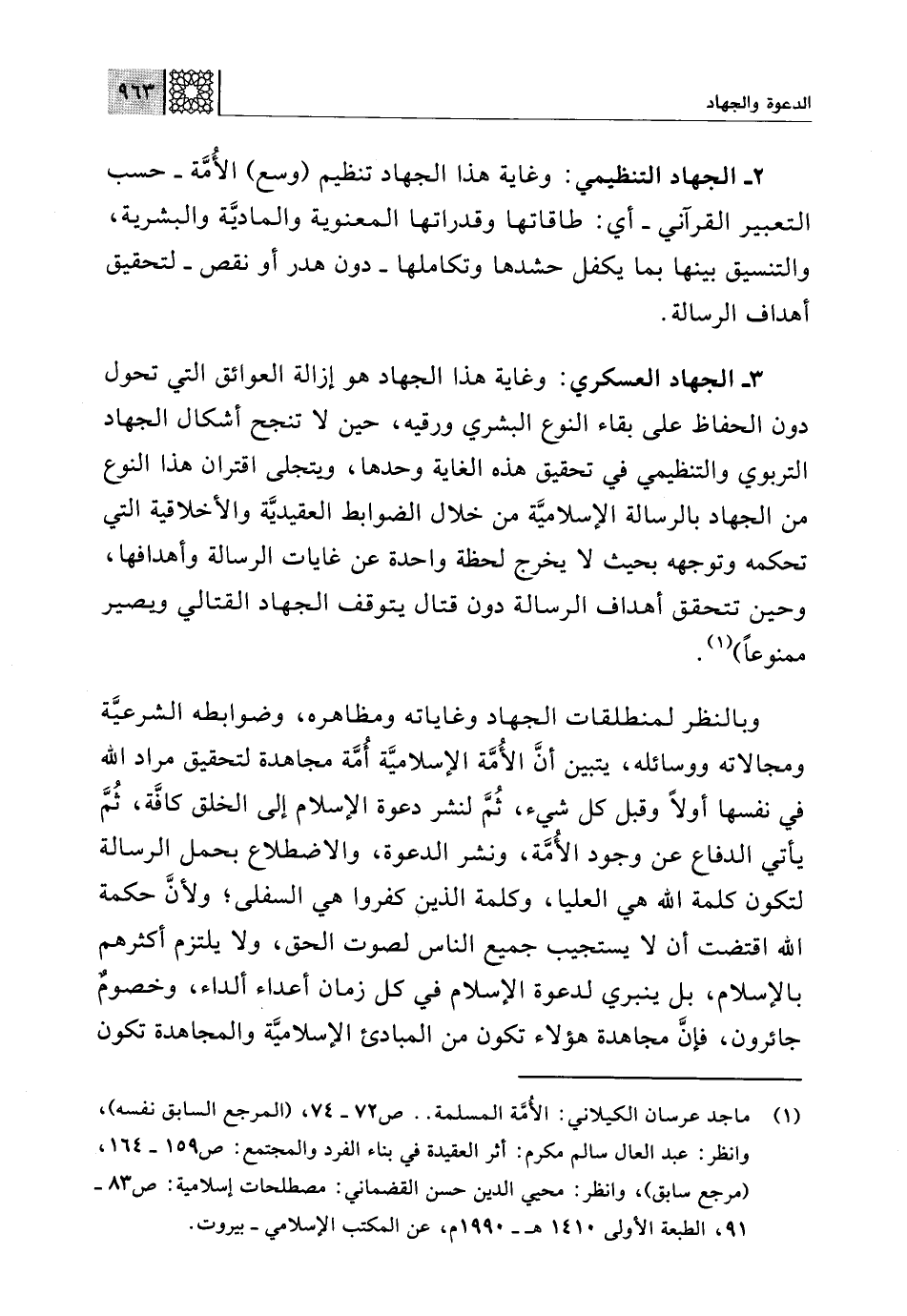 (¬1) ماجد عرسان الكيلاني: الأُمَّة المسلمة. . ص 72 - 74، (المرجع السابق نفسه)، وانظر: عبد العال سالم مكرم: أثر العقيدة في بناء الفرد والمجتمع: ص 159 - 164، (مرجع سابق)، وانظر: محيي الدين حسن القضماني: مصطلحات إسلامية: ص 83 - 91، الطبعة الأولى 1410 هـ - 1990 م، عن المكتب الإسلامي - بيروت.