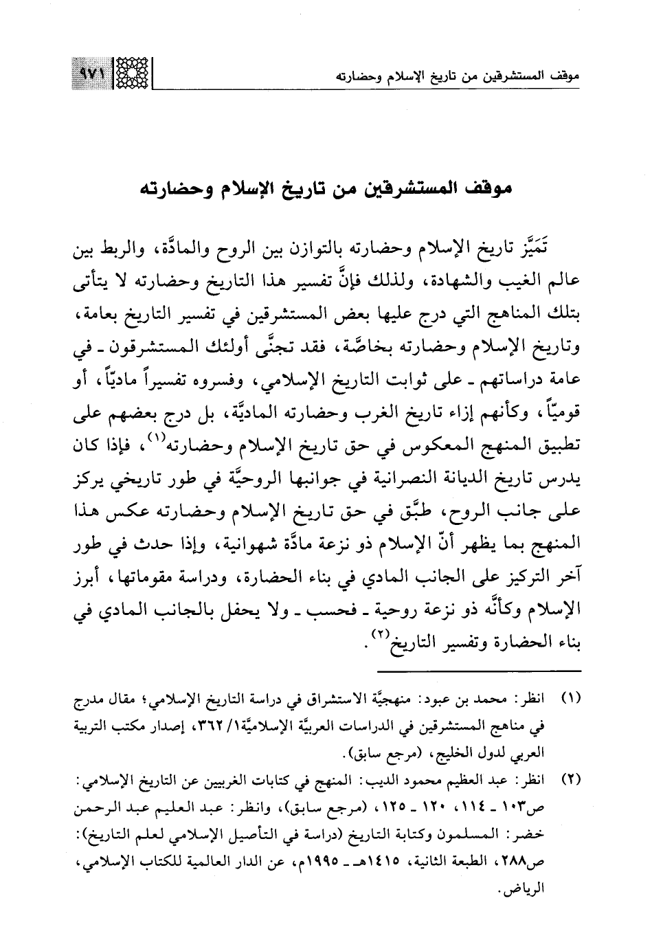 (¬1) انظر: محمد بن عبود: منهجيَّة الاستشراق في دراسة التاريخ الإسلامي؛ مقال مدرج في مناهج المستشرقين في الدراسات العربيَّة الإسلاميَّة 1/ 362، إصدار مكتب التربية العربي لدول الخليج، (مرجع سابق).
