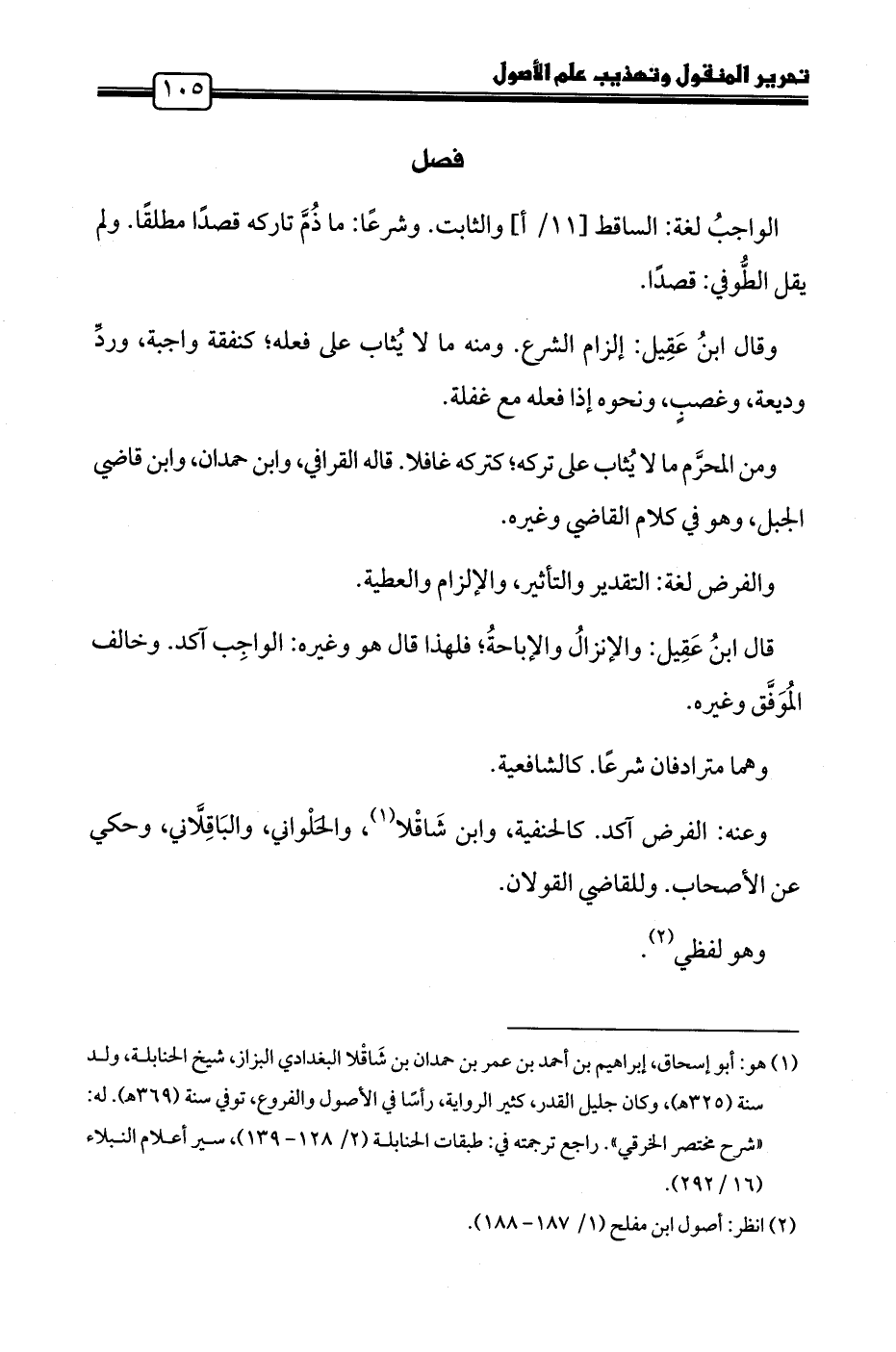 (٢) انظر: أصول ابن مفلح (١/ ١٨٧ - ١٨٨).