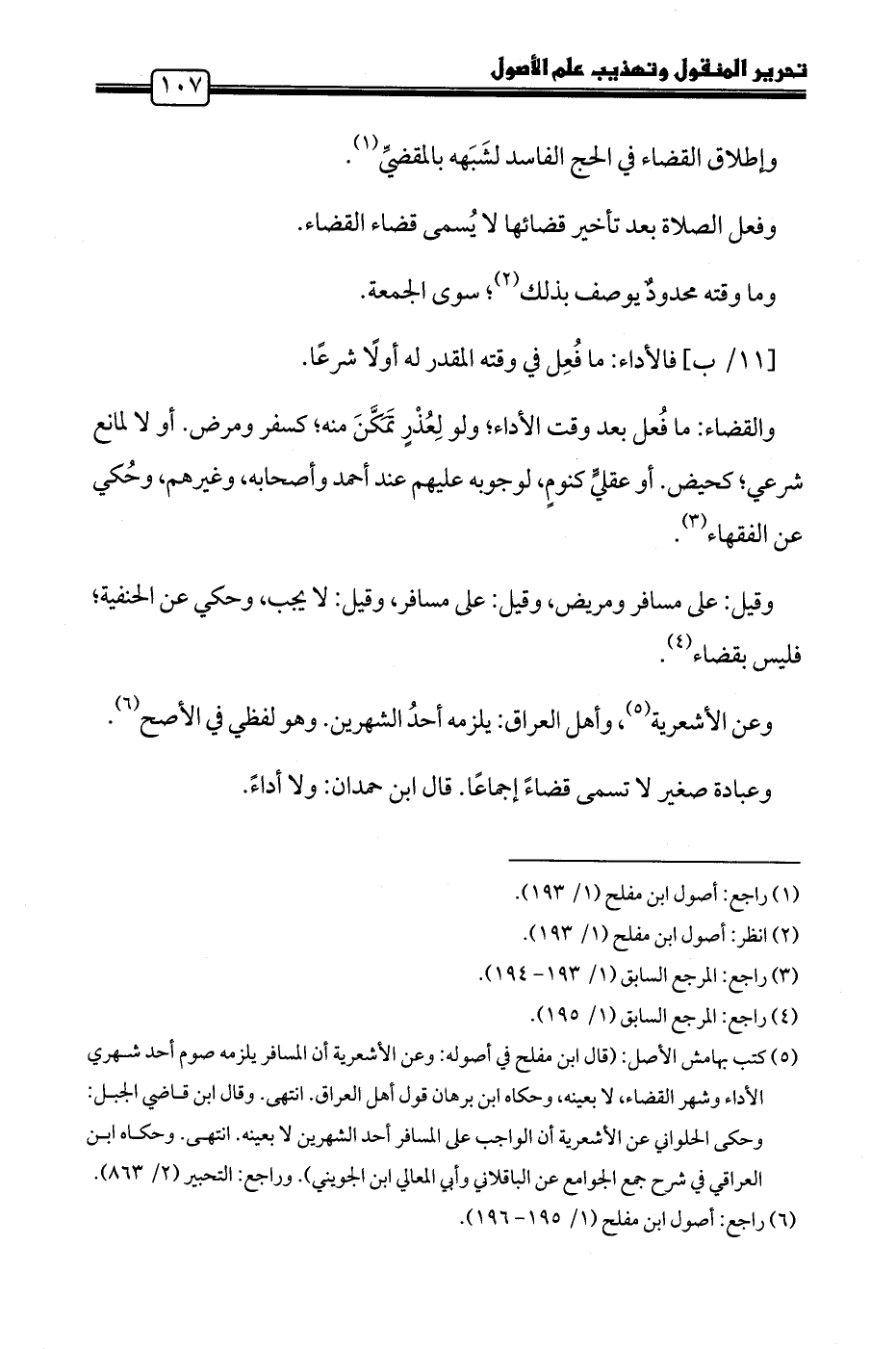 (٦) راجع: أصول ابن مفلح (١/ ١٩٥ - ١٩٦).