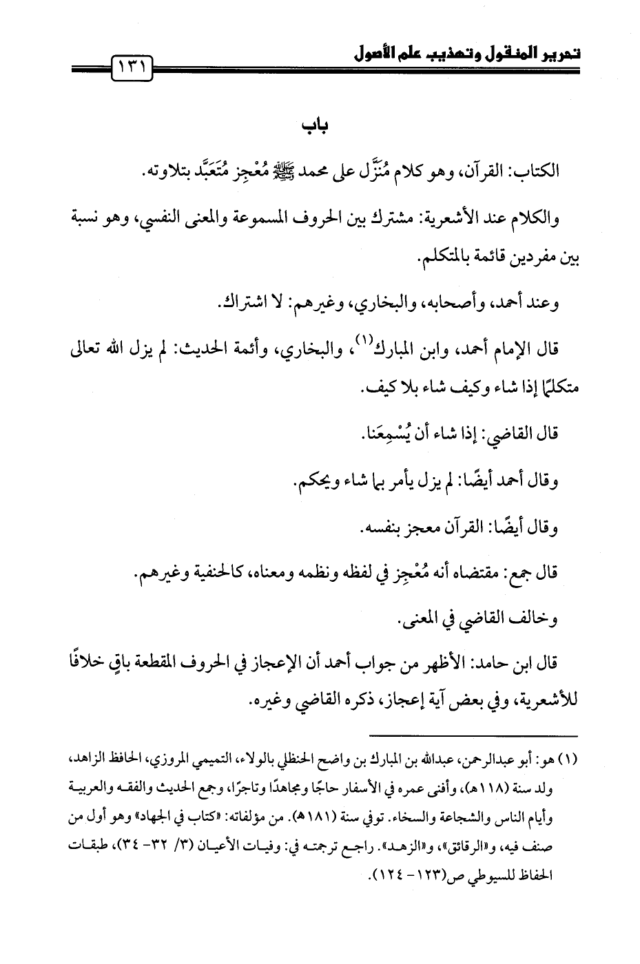 قال ابن حامد: الأظهر من جواب أحمد أن الإعجاز في الحروف المقطعة باقٍ خلافًا للأشعرية، وفي بعض آية إعجاز، ذكره القاضي وغيره.