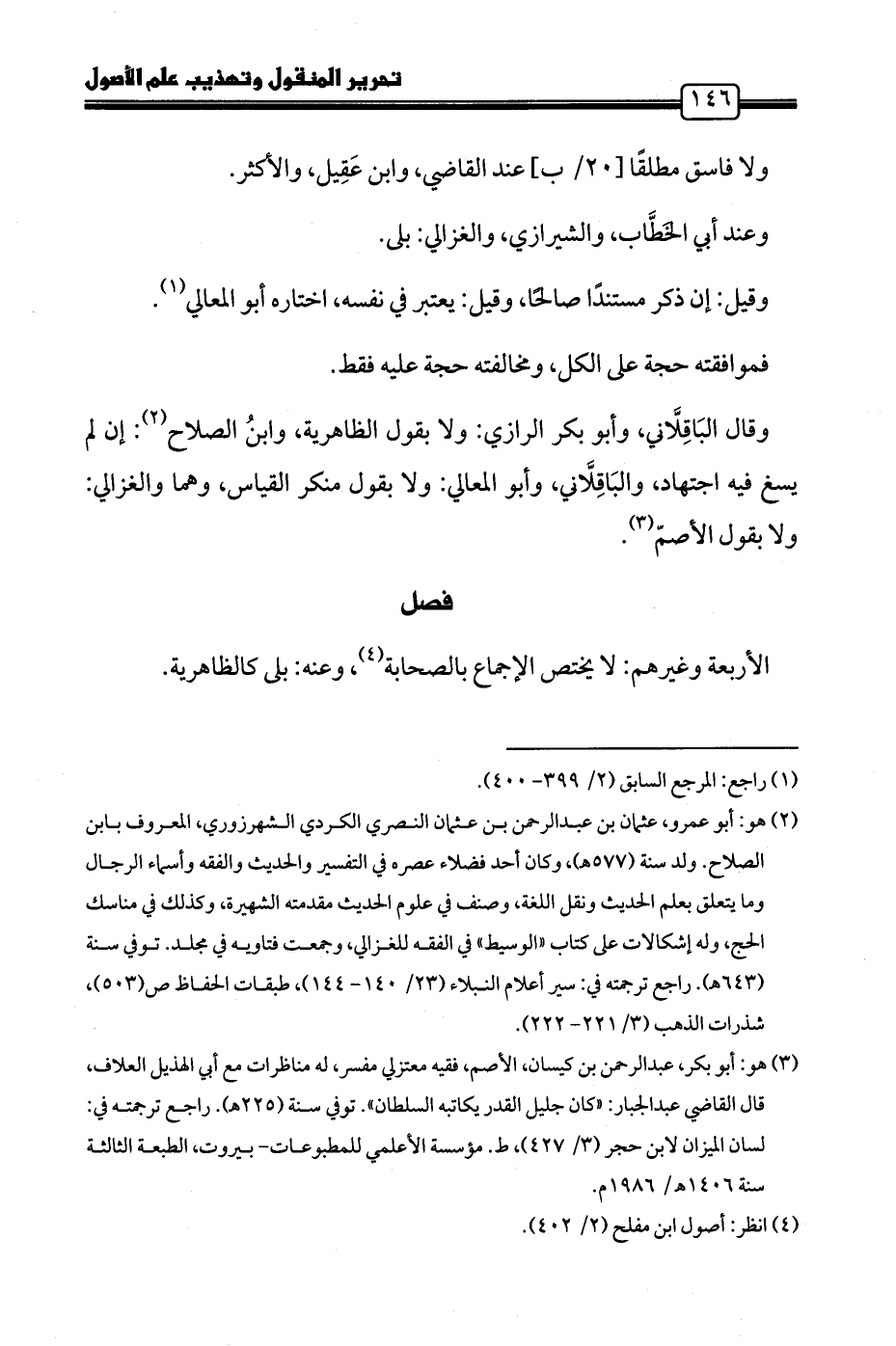 (٤) انظر: أصول ابن مفلح (٢/ ٤٠٢).