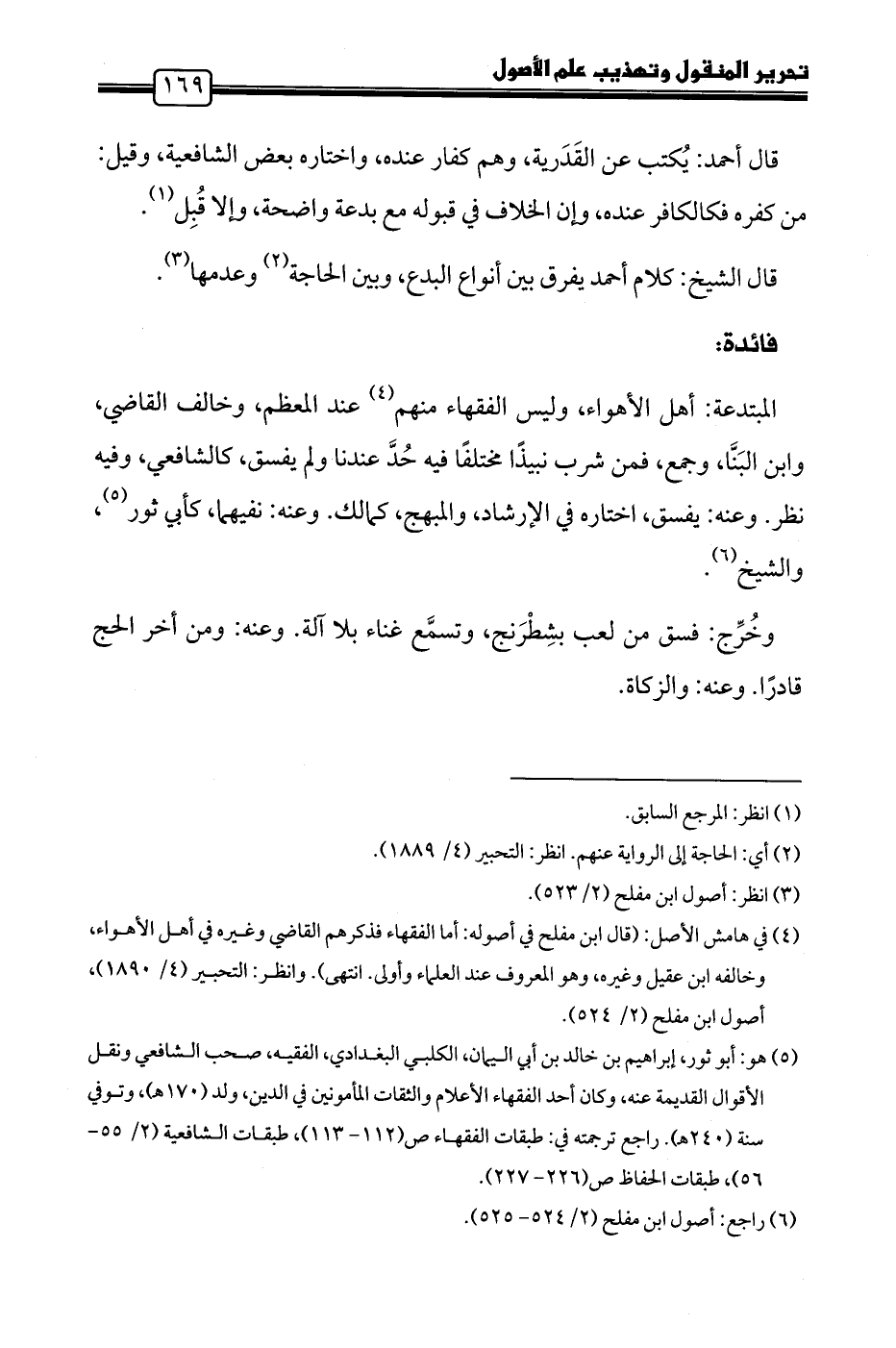 (٦) راجع: أصول ابن مفلح (٢/ ٥٢٤ - ٥٢٥).