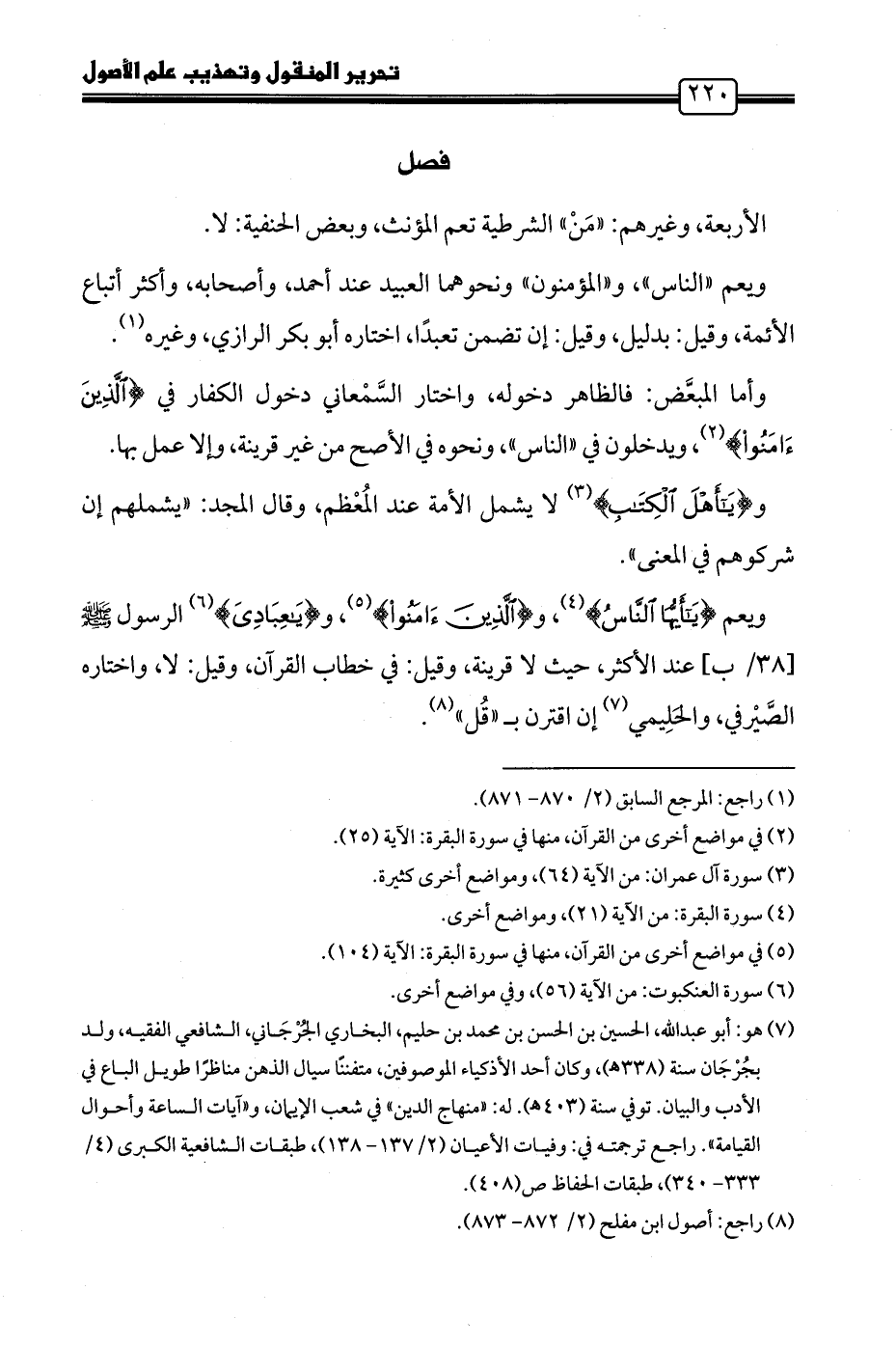 (٨) راجع: أصول ابن مفلح (٢/ ٨٧٢ - ٨٧٣).