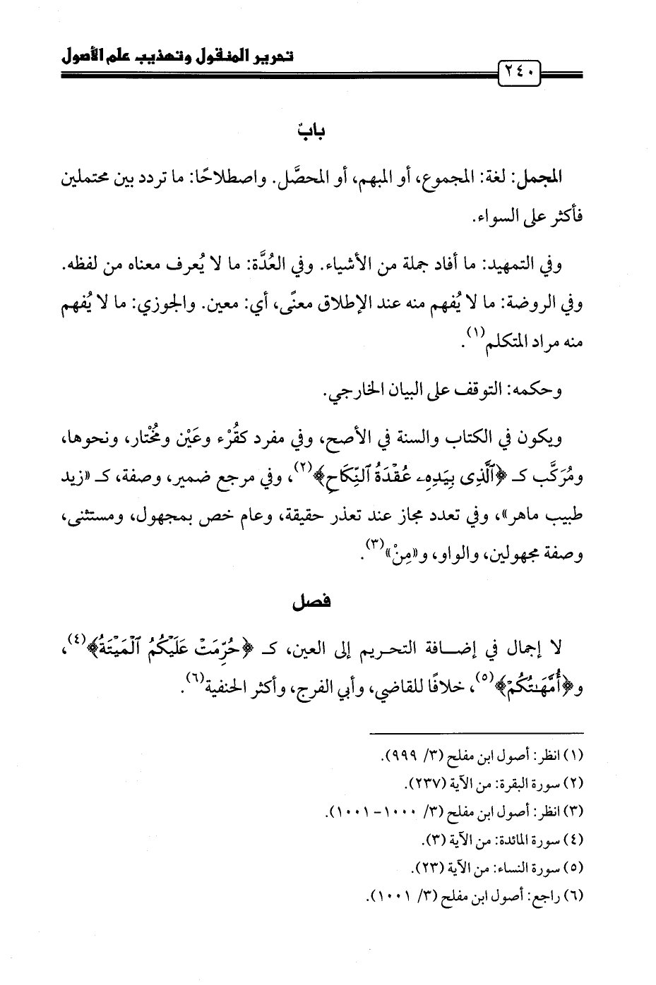 (٦) راجع: أصول ابن مفلح (٣/ ١٠٠١).