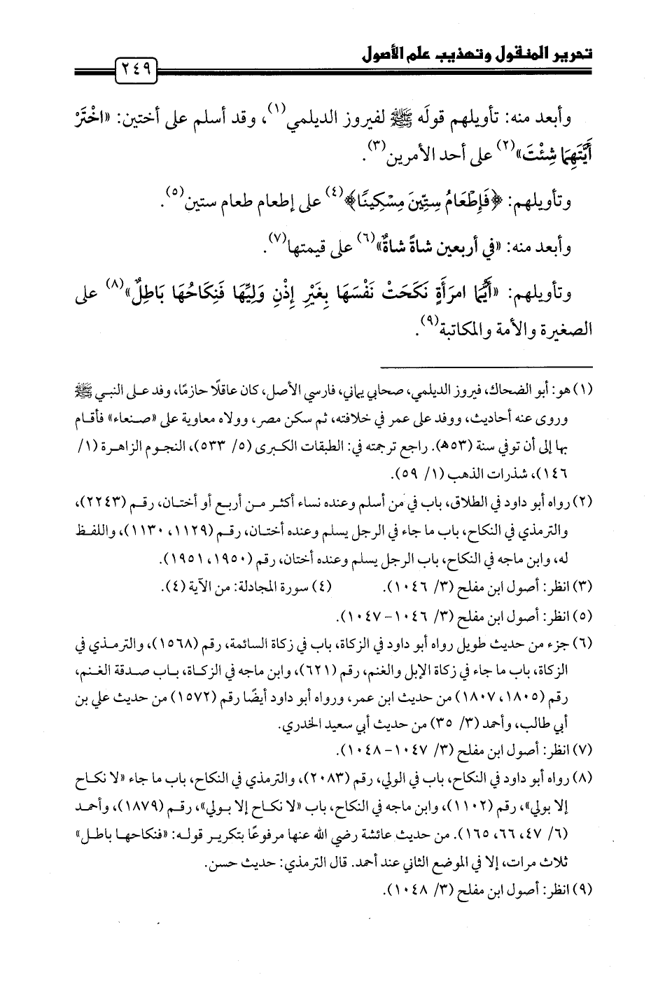 (٧) انظر: أصول ابن مفلح (٣/ ١٠٤٧ - ١٠٤٨).