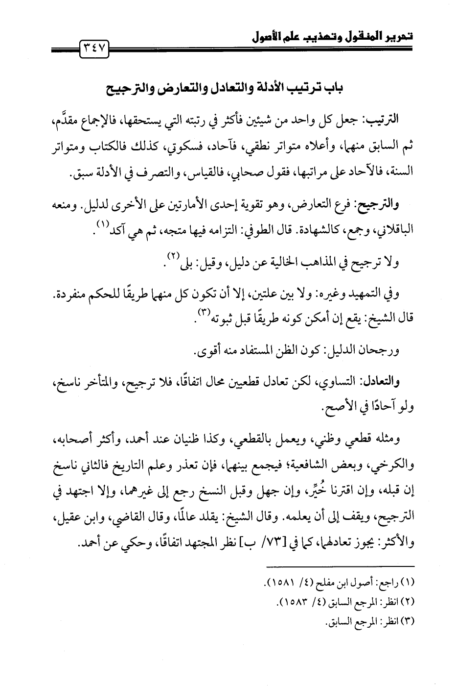 باب ترتيب الأدلة والتعادل والتعارض والترجيح