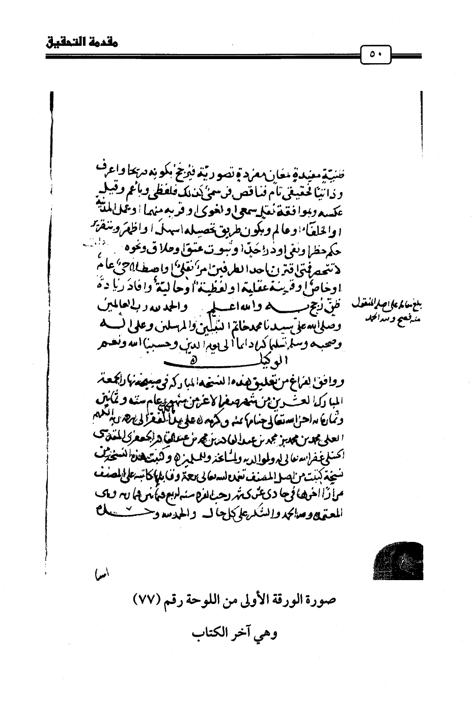 صورة الورقة الأولى من اللوحة رقم (٧٧) وهي آخر الكتاب