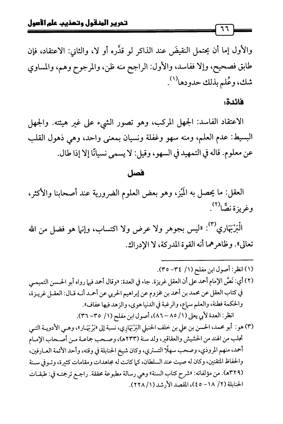 (١) انظر: أصول ابن مفلح (١/ ٣٤ - ٣٥).