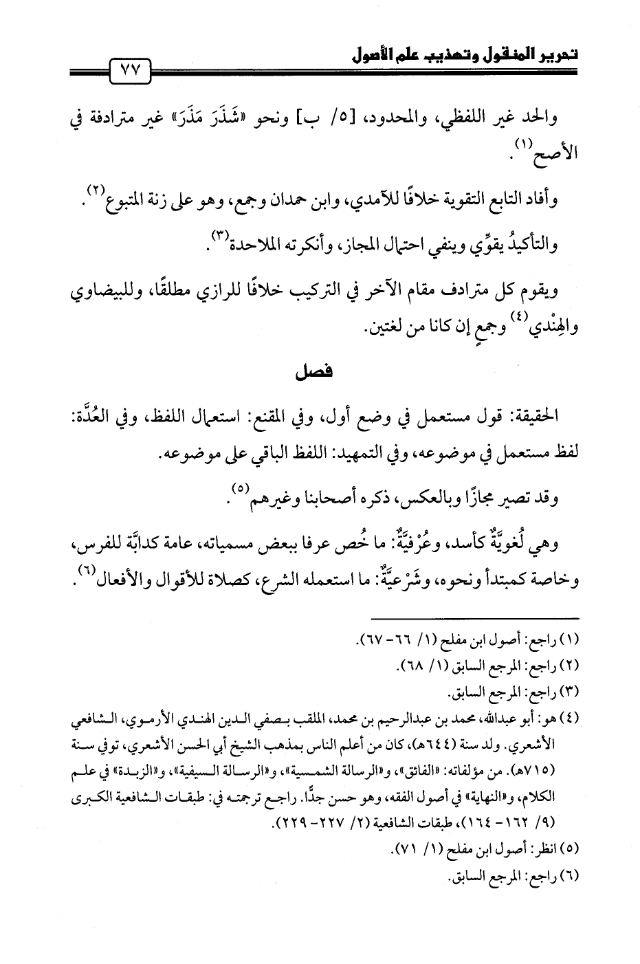 (٥) انظر: أصول ابن مفلح (١/ ٧١).