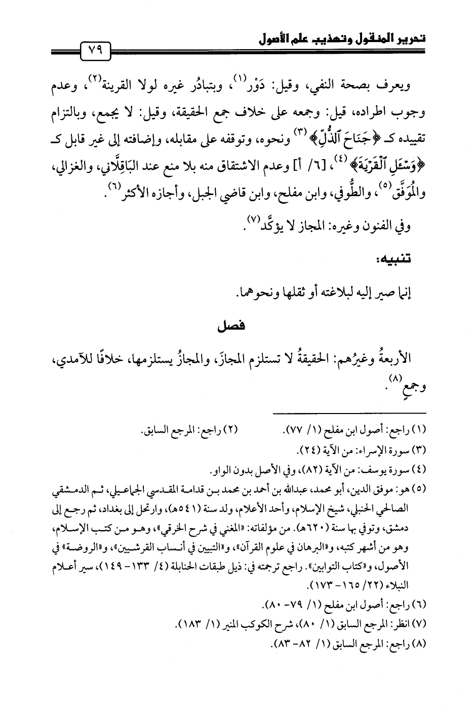 (٦) راجع: أصول ابن مفلح (١/ ٧٩ - ٨٠).