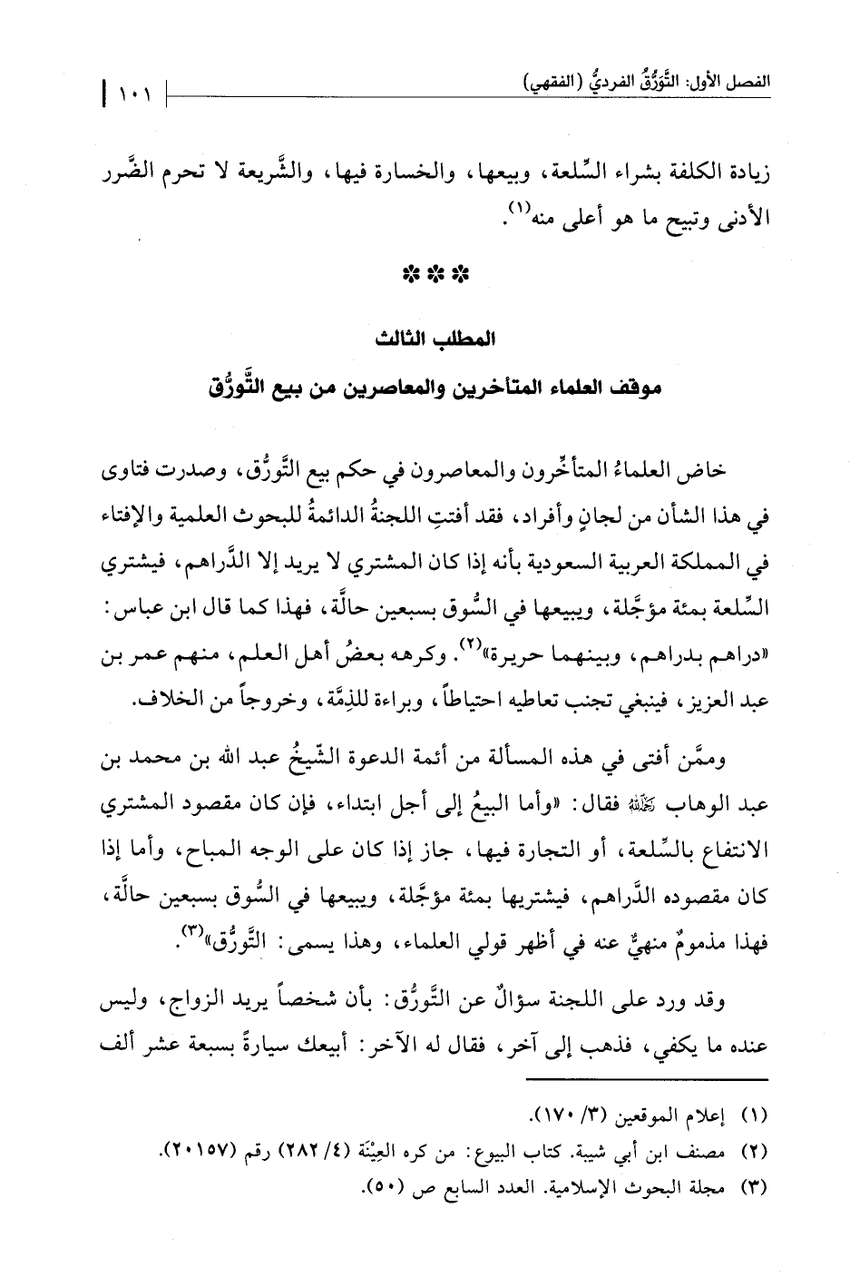 المطلب الثالث موقف العلماء المتأخرين والمعاصرين من بيع التَّورُّق