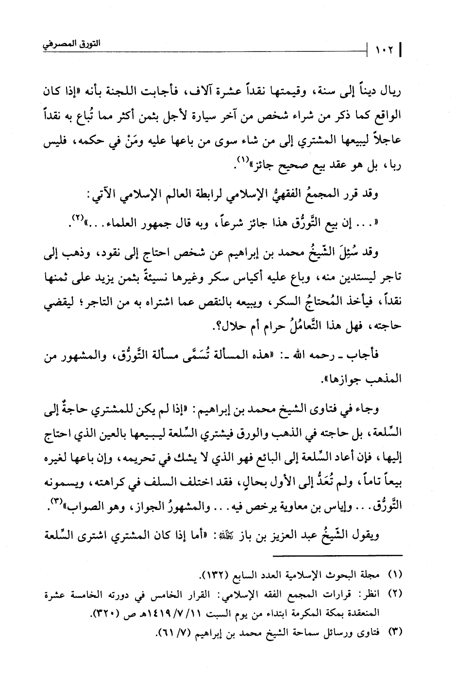 ". . . إن بيع التَّورُّق هذا جائز شرعًا، وبه قال جمهور العلماء. . ." (¬2).
