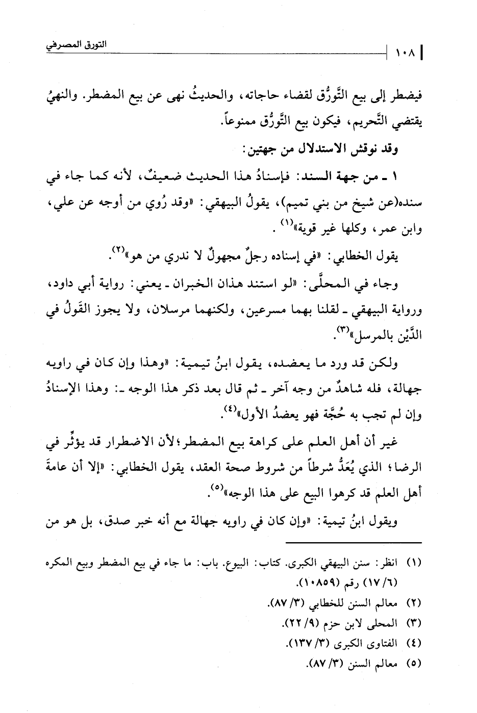 (¬1) انظر: سنن البيهقي الكبرى. كتاب: البيوع. باب: ما جاء في بيع المضطر وبيع المكره (6/ 17) رقم (10859).
